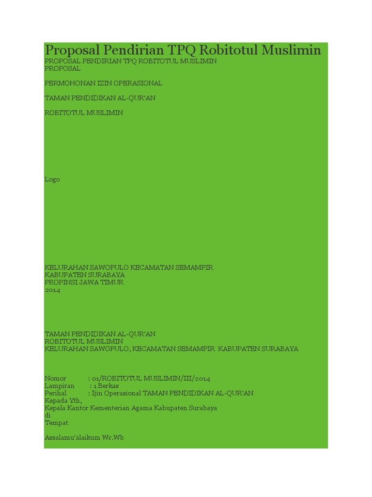 Taman Pendidikan Al Qur An Nurul Yaqin Contoh Proposal Pendirian Tpq Nurul Yaqin from 2.bp.blogspot.com Maybe you would like to learn more about one of these? We did not find results for: Check spelling or type a new query.